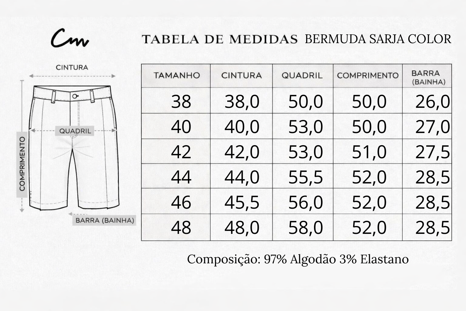 Bermuda Sarja Color — Conforto e Versatilidade no Dia a Dia
