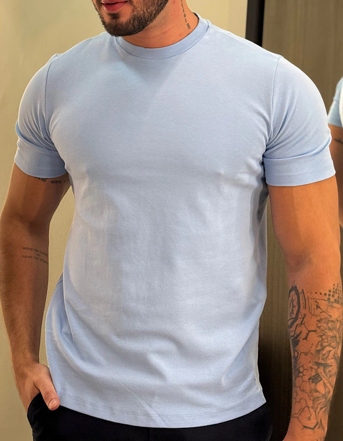 Camiseta Gola Média em Algodão Suedine