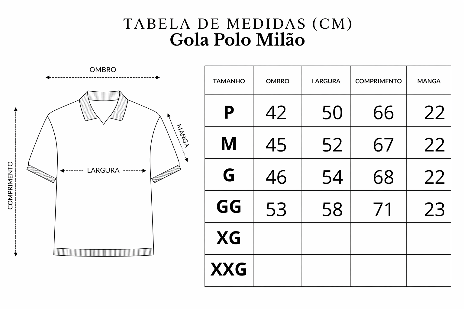 • Gola polo limpa, sem botões